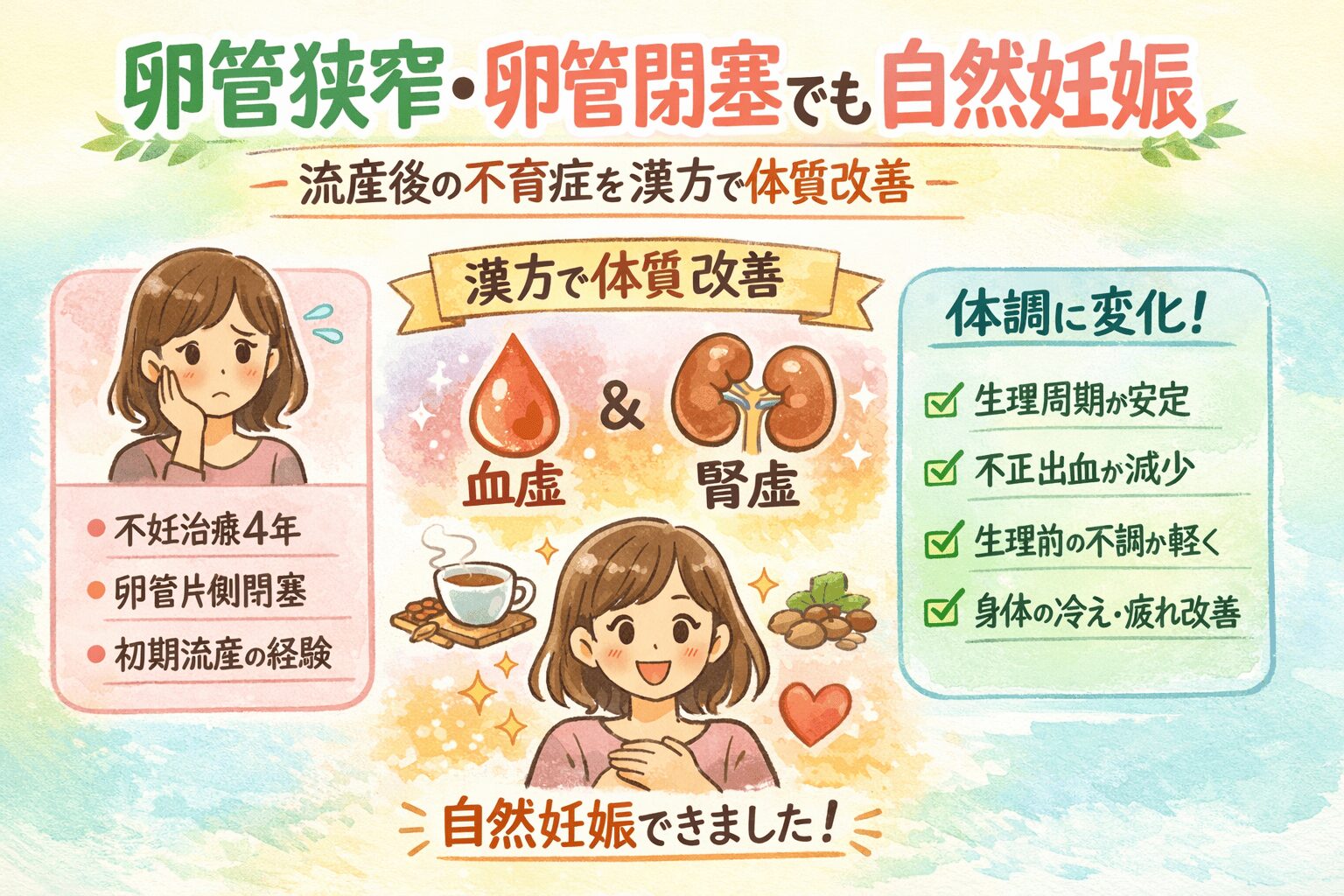 【卵管狭窄・卵管閉塞でも自然妊娠】流産後の不育症を漢方で体質改善した妊娠体験談