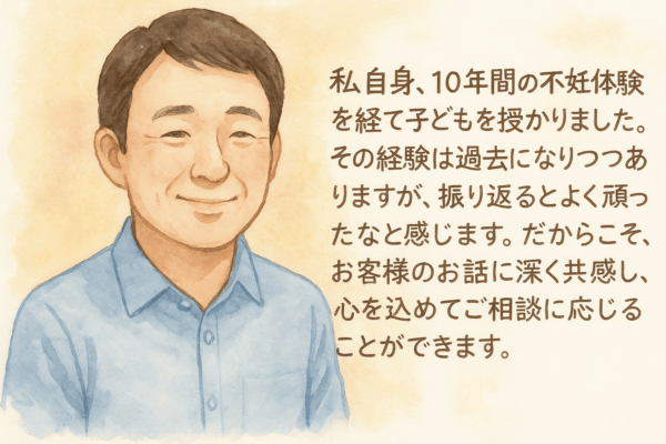 私自身も10年間の不妊治療を経験しているため、同じ悩みを持つ方の力になれるよう、日々心を込めてご相談に応じています。